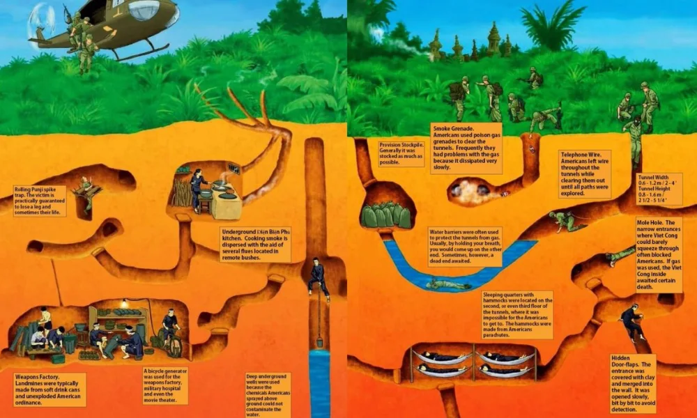 Además de explorar los túneles, los visitantes también pueden conocer las instalaciones que existían dentro del sistema subterráneo. Espacios como la cocina Hoang Cam, salas de reunión, hospitales improvisados o almacenes de armas han sido recreados para los turistas. Estas instalaciones muestran cómo se organizaba la vida cotidiana en tiempos de resistencia.