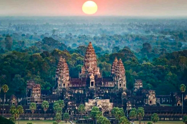 Visita al famoso y magnífico templo de Angkor Wat. Esta obra maestra arquitectónica, construida en el siglo XII, abarca una superficie de aproximadamente 210 hectáreas. Cuenta con numerosas galerías con columnas, bibliotecas, pabellones, patios y estanques, además de bajorrelieves tallados que narran la historia del Ramayana y la vida cotidiana en la época de su construcción.